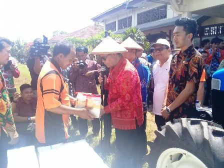 Dimana peralatan pertanian ini diserahkan langsung oleh Pltdannbsp; Bupati Lampung Tengah Loekman Djoyosoemarto, S.Sos., berupa 5 traktor roda empat, 54 traktor roda dua dan 11 unit alat untuk tanam padi, serta 15 unit mesin pompa yang diserahkan dalam acara pertemuan penyuluh pertanian dan UPTD di BBI Trimurjo Lamteng.