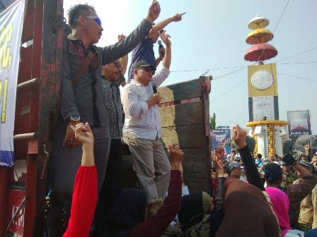Suasana juga sempar panas ketika beberapa mass tampak berteriak dan mendorong beberapa aparat polisi yang berjaga, sementara itu terlihat kapolres Bandar Lampung, Murbani Budi Pitono tengah berusaha melerai aksi saling didorong.