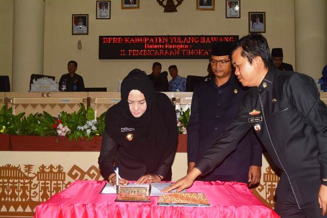 “Dikesempatan ini, tidak lupa saya menyampaikan ucapan terima kasih dan penghargaan yang setinggi-tingginya pada seluruh Anggota Dewan dan Tim Anggaran Pemerintah Daerah Kabupaten Tulangbawang yang mana telah bekerja keras membahas Rancangan Kebijakan Umum Perubahan APBD serta Rancangan Prioritas dan Plafon Anggaran Sementara Perubahan APBD Tahun Anggaran 2018 sehingga dapat disepakati,” jelas Ibu Bupati.