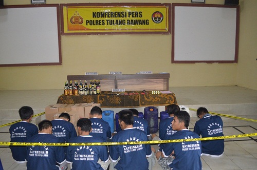 “Sebanyak 14 kasus berhasil diungkap dalam operasi ini, dengan jumlah tersangka sebanyak 56 orang dan BB (barang bukti) berupa 440 botol miras berbagai merk, 1.130 liter tuak serta 2 bilah sajam (senjata tajam) jenis badik,” ujar AKBP Syaiful.