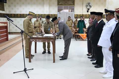 Pelantikan pejabat tersebut, yakni Sunyoto, SE, MM., sebagai Kepala Badan Kepegawaian dan Pengembangan SDM, Halimah Bin Zakaria, SE, MM., sebagai Kepala Dinas Perpustakaan dan Kearsipan, Zainal Fikri, ST., sebagai Kepala Dinas PUPR, Hi. Firman Rusli, ST, MM., sebagai Kepala Dinas Perumahan Rakyat dan Kawasan Permukiman, Mernilita Yanthi, SE, MM., sebagai Kepala Bagian Pengembangan Perekonomian Daerah, Jayadi Yasa, S.STP, MIP., sebagai Kepala Protokol, Zulkifli, SE, sebagai Camat Teluk Pandan, dan Halmaryati, ST, MM., sebagai sekertaris dewan Korp Pegawai RI.