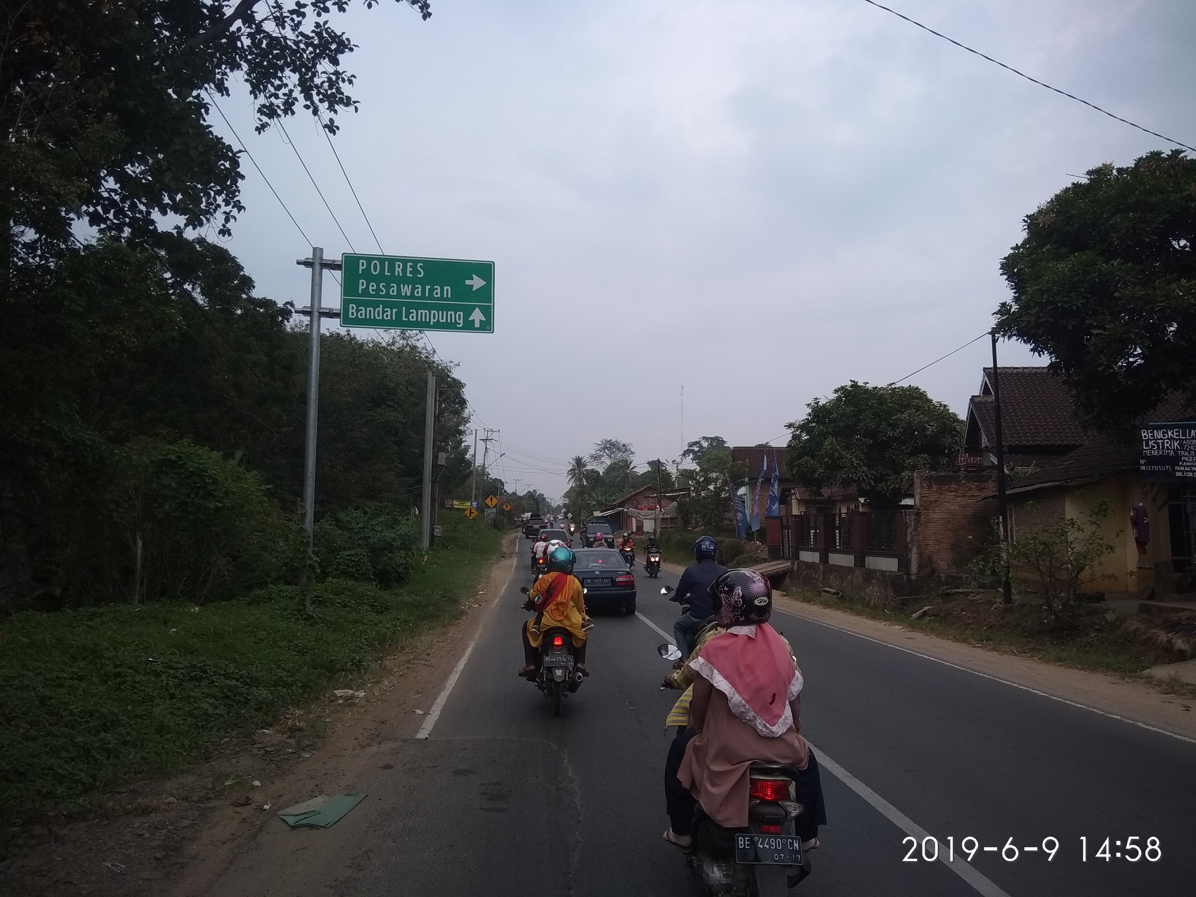 PESAWARAN – Arus mudik balik idul Fitri 1440 H 2019 di H plus 5 jalan Ahmad Yani Gedongtataan Kabupaten Pesawaran tahun 2019 tidak lagi terlalu membeludak dipadati kendaraan para pemudik dari arah Kabupaten Tanggamus yang akan ke Bakauheuni Lampung Selatan.