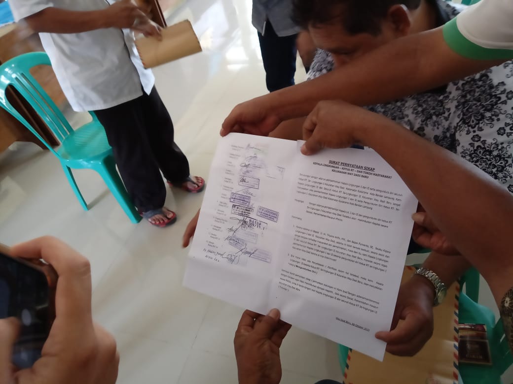 Sementara, Sekretaris Camat (Sekcam) Sukarame, Udo Panji Ismoyo yang menerima langsung pernyataan surat sikap dari Kaling dan RT Way Dadi Baru mengatakan, usulan ini nantinya akan disampaikan mengingat saat ini camat sendang ada agenda di kantor Pemerintah Kota Bandar Lampung. “Nanti usulan ini akan saya sampaikan,” ujar Udo. (tim/intai).