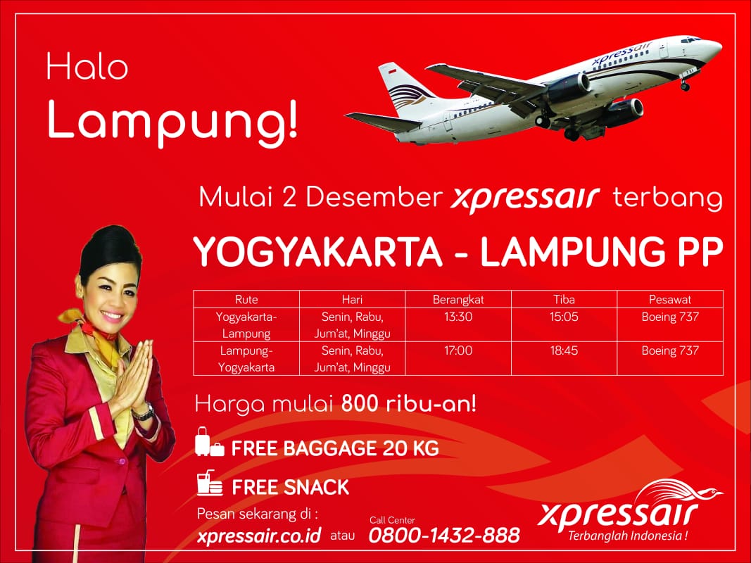 Humas Bandara Radin Inten II Wahyu Aria Sakti dan jajaran mendukung penuh terbukanya rute tambahan lagi Yogyakarta-Tanjungkarang, begitu sebaliknya. Dengan menggunakan pesawat express air.