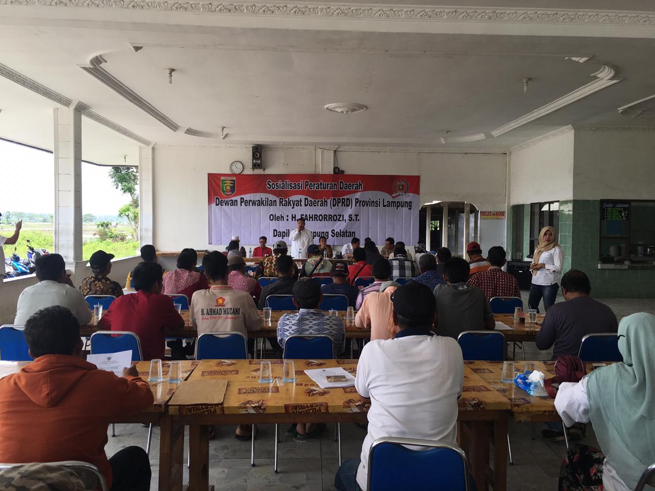 INTAILAMPUNG.COM – Anggota Dewan Perwakilan Rakyat Daerah (DPRD) Provinsi Lampung Fahrorrozi, melaksanakan sosialisai Peraturan Daerah (Perda) tentang bahaya penyalahgunaan narkotika. Sosialisasi Perda (Sosper) tersebut, digelar di Daerah Pemilihan (Dapil) II, yang berlokasi di Desa Legundi, Kecamatan Ketapang, Kabupaten Lampung Selatan, Sabtu, (25/01/2019).