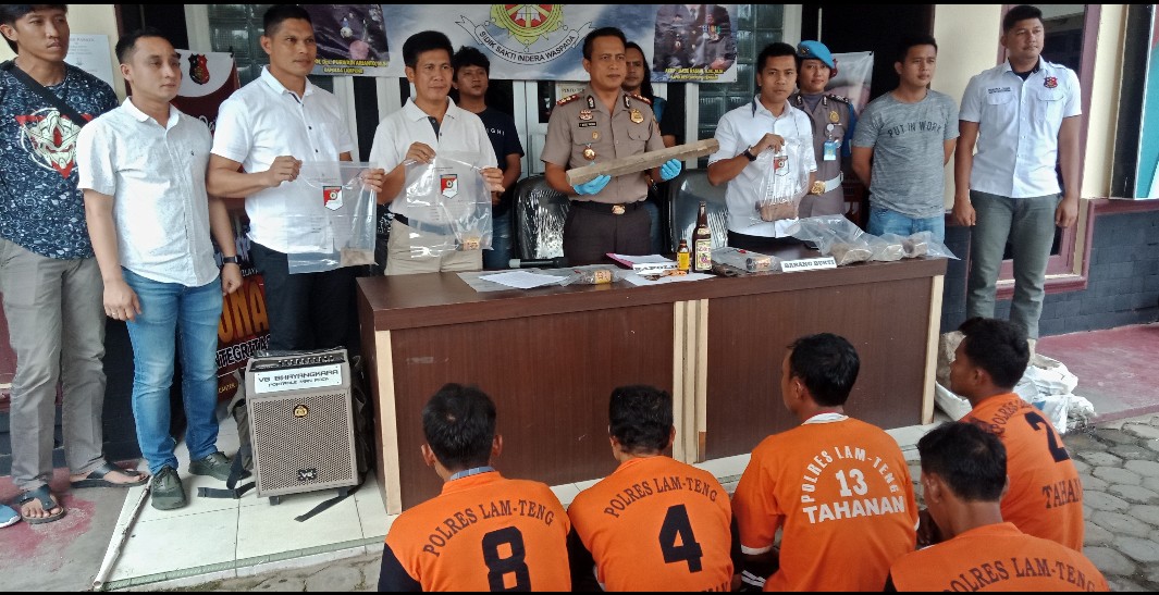 Kapolres Lamteng AKBP I Made Rasma, S.Ik., M.SI., didampingi Kasat Reskrim AKP Yuda Wira Negara, SH, S.Ik., mengatakan, bahwa dari jumlah 18 tersangka yang ditangkap, masih ada dua pelaku lain yang menjadi DPO. “14 pelaku kita amankan 4 menyerahkan diri, dua pelaku DPO. Jumlah keseluruhan ada 20 tersangka,” kata Kapolres I Made Rasma, dalam ekspos yang dilakukan di depan Kantor Satreskrim, Polres Lamteng, Rabu (05/02/2020).