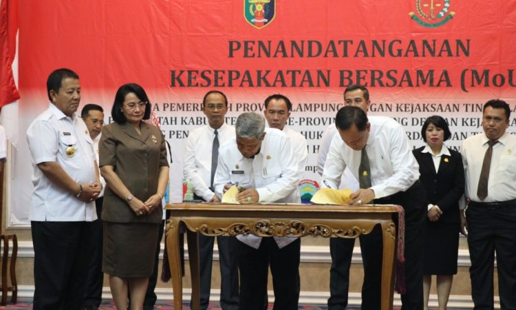 Kerjasama ini terkait tentang penanganan masalah Hukum Bidang Perdata dan Tata Usaha Negara (TUN) di wilayah hukum Provinsi Lampung. Acara digelar di Balai Keratun Pemprov Lampung, Kamis (06/02/2020).