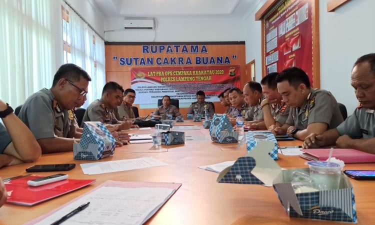 Sebelum dilaksanakan OPS Cempaka Krakatau 2020. Jajaran Polres Lamteng menggelar kegiatan Latihan Pra Oprasi (Lat Pra Ops) yang dipimpin langsung Waka Polres Lampung Tengah Kompol Harto Agung. C., S.H., dengan diikuti 60 orang. Diantaranya para Kabag, Kasat, Kapolsek Jajaran Polres Lampung Tengah dan para kanit reskrim pengemban fungsi reskrim. Rabu (12/02/2020).