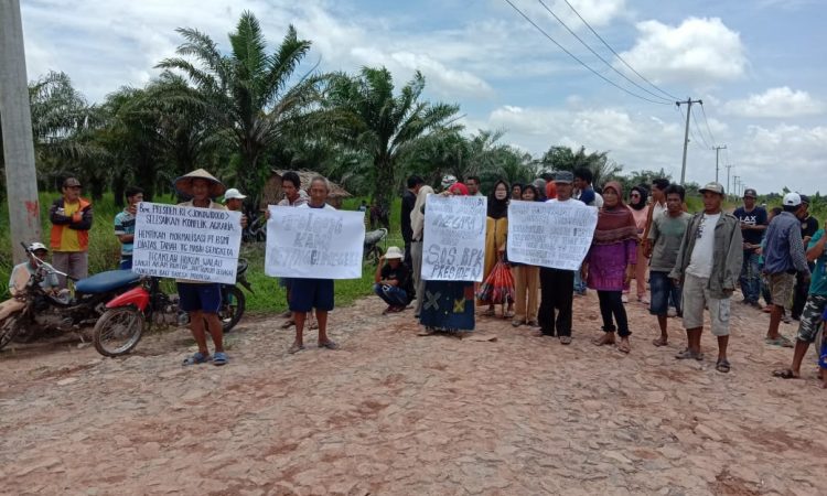 Aksi penolakan ini dilakukan oleh gabungan masyarakat Desa Kagungan Dalam, Sritanjung, dan Tanjung Harapan, Kecamatan Tanjung Raya, lantaran pihak perusahan telah melanggar kesepakatan.