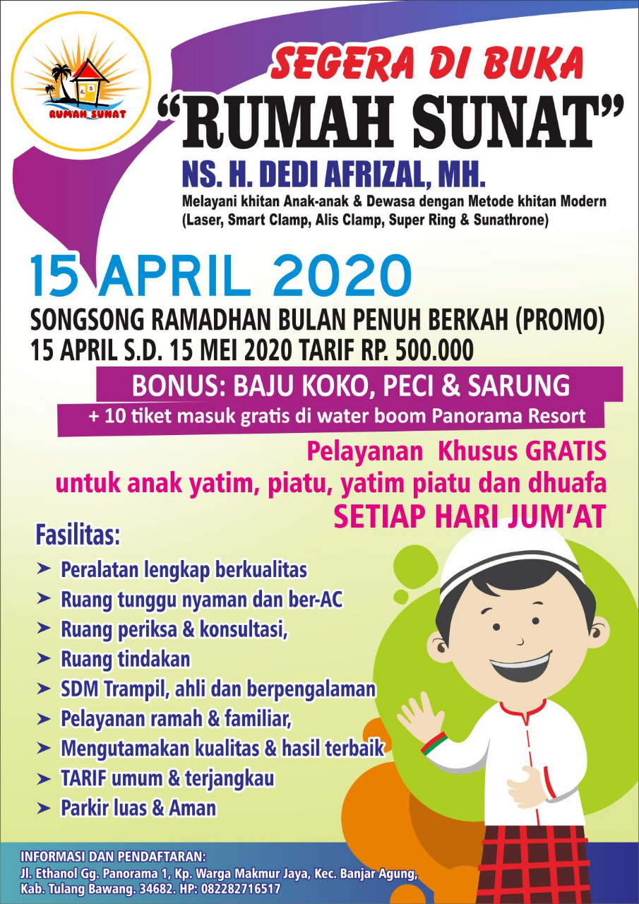 “Songsong Ramadhan bulan penuh berkah (promo) dengan biaya Rp500 ribu, yang di mulai pada 15 April sampai 15 Mei 2020,” demikian bunyi promonya yang diterima pada Rabu (15/4/2020)