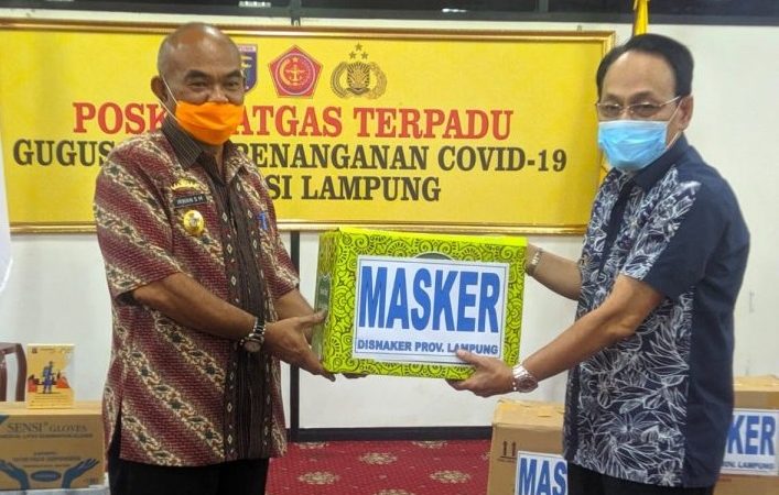 Bantuan tersebut secara simbolis diserahkan oleh Plt Kadis Sosial Provinsi Lampung Heryana Romdhony dan Kadis Tenaga Kerja Provinsi Lampung Lukmansyah, dan diterima oleh Asisten Pemerintahan dan Kesra Irwan S Marpaung.