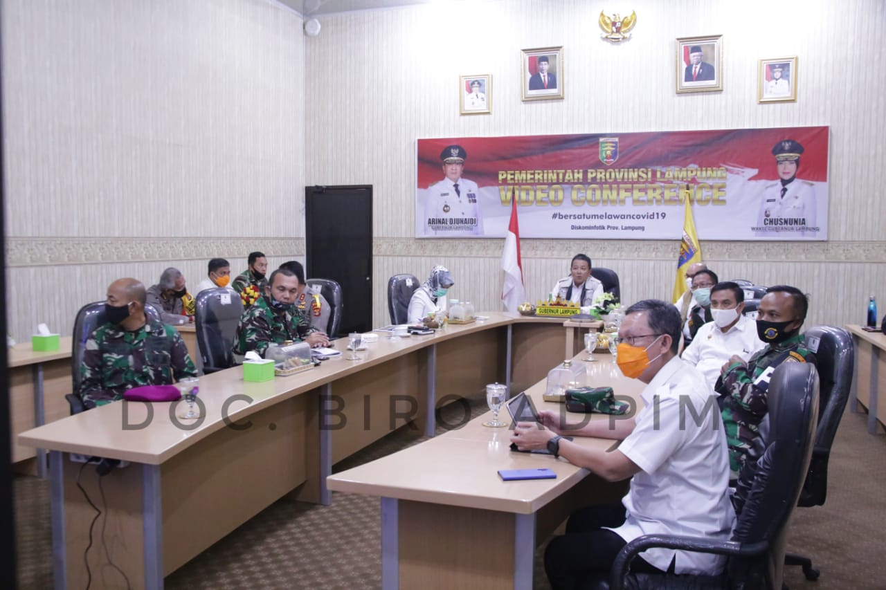 Bandar Lampung, Intailampung.com – Gubernur Lampung Arinal Djunaidi mengikuti rapat Virtual Meeting terkait adaptasi kehidupan baru (new normal) dalam menghadapi Covid-19, di Ruang Command Center, Dinas Kominfotik Provinsi Lampung, Bandarlampung, Rabu (10/6/2020).