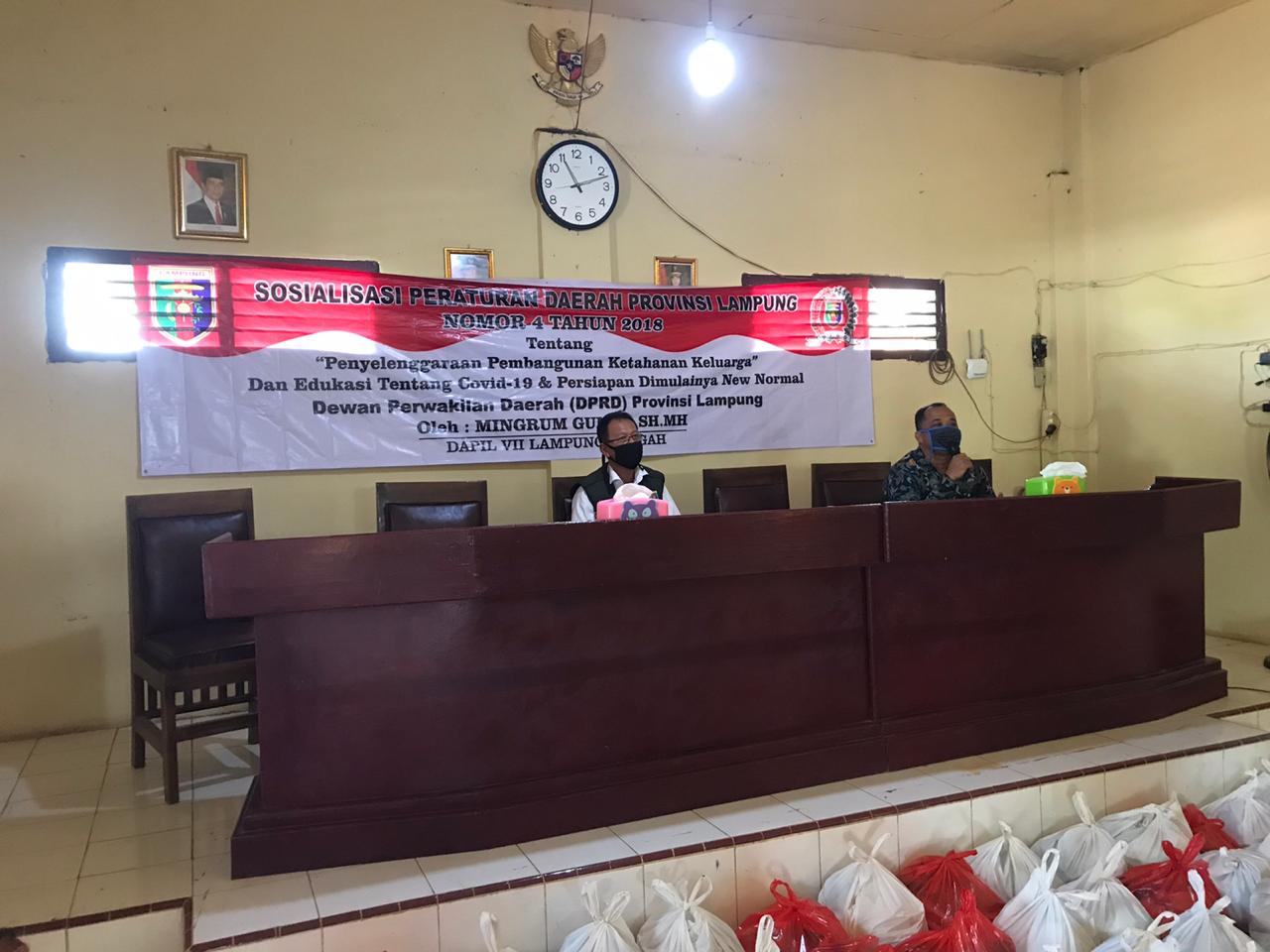 Bandar Lampung, Intailampung.com-Ketua DPRD Provinsi Lampung Mingrum Gumay melakukan Sosialisasi Perda (Sosper) Provinsi Lampung No. 4/2018 tentang Penyelenggaraan Pembangunan Ketahanan Keluarga serta edukasi tentang Covid-19 dan persiapan dimulainya New Normal di Kampung Wates dan Kampung Sidokerto kecamatan Bumiratunuban, Lampung Tengah,