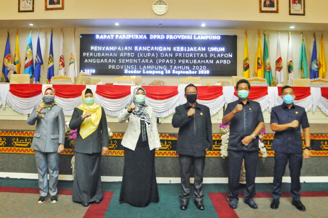 Bandar Lampung, Intailampung.com -Wakil Gubernur Lampung, Chusnunia, menghadiri Sidang Paripurna DPRD Provinsi Lampung Tentang Penyampaian Kebijakan Umum Perubahan APBD (KUPA) Dan Prioritas Dan Plafon Anggaran Sementara (PPAS) Perubahan APBD Provinsi Lampung Tahun 2020, di Ruang Sidang DPRD Provinsi Lampung, Rabu (16/09/2020).