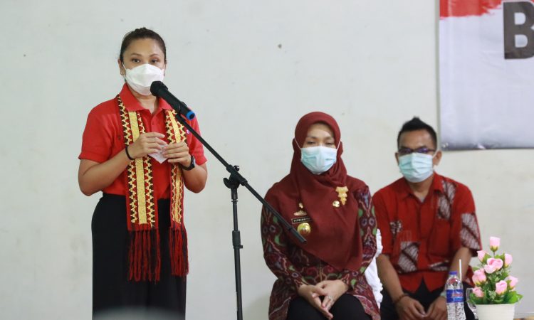 JATIAGUNG — Melanjutkan kunjungannya di Provinsi Lampung, usai memberikan bantuan di Lampung Tengah, Penasihat Dharma Wanita Persatuan Kementerian Sosial, Grace Batubara didampingi Kepala Dinas PPPA Provinsi Lampung Fitrianita Damhuri, melakukan penyaluran bantuan dari Kementrian Sosial RI kepada masyarakat Jati Agung, Lampung Selatan. Kegiatan dipusatkan di Balai Desa Karang Anyar, Jati Agung, Jumat (20/11) sore.