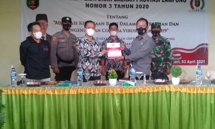 Dijelaskan Mingrum DPRD Provinsi Lampung saat ini sudah memiliki Perda nomor 3 tahun 2020 tentang Adaptasi kebiasaan baru dalam mencegah dan pengendalian Covid 19 guna memberikan payung hukum bagi pemerintah dalam menekan dan mengurangi penularan covid 19 di Provinsi Lampung.