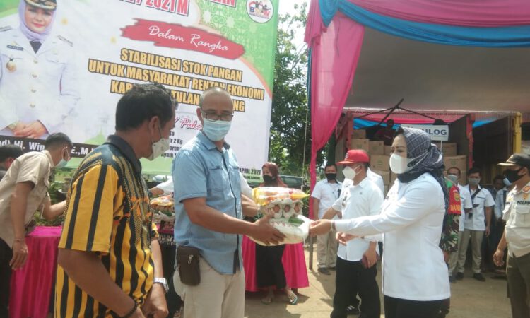 “Di pasar murah ini masyarakat bisa mendapatkan paket sembako dengan harga terjangkau. Rincian harga tebus per paket senilai Rp 95.000, masing-masing paket sembako terdiri dari beras Premium 5 Kg, gula 2 Kg, Minyak Goreng 2 Liter, Telur Ayam 1 Kg. Harga sembako per paket lebih murah 30% -35% di bandingkan dengan harga sembako di pasaran,” ucap Bupati Winarti, saat me-launching pasar murah di Kampung Ujung Gunung Ilir, dan menyerahkan secara simbolis paket sembako pasar murah kepada masyarakat, Rabu (21/4/2021).