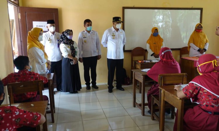 Bupati Musa melihat langsung kegiatan murid yang sudah melangsungkan belajar tatap muka, mulai dari kesiapan alat pengukur suhu tubuh, tempat cuci tangan, masker dan ruangan kelas yang sudah menerapkan jaga jarak dengan hanya diisi oleh 15 murid saja setiap kelasnya.
