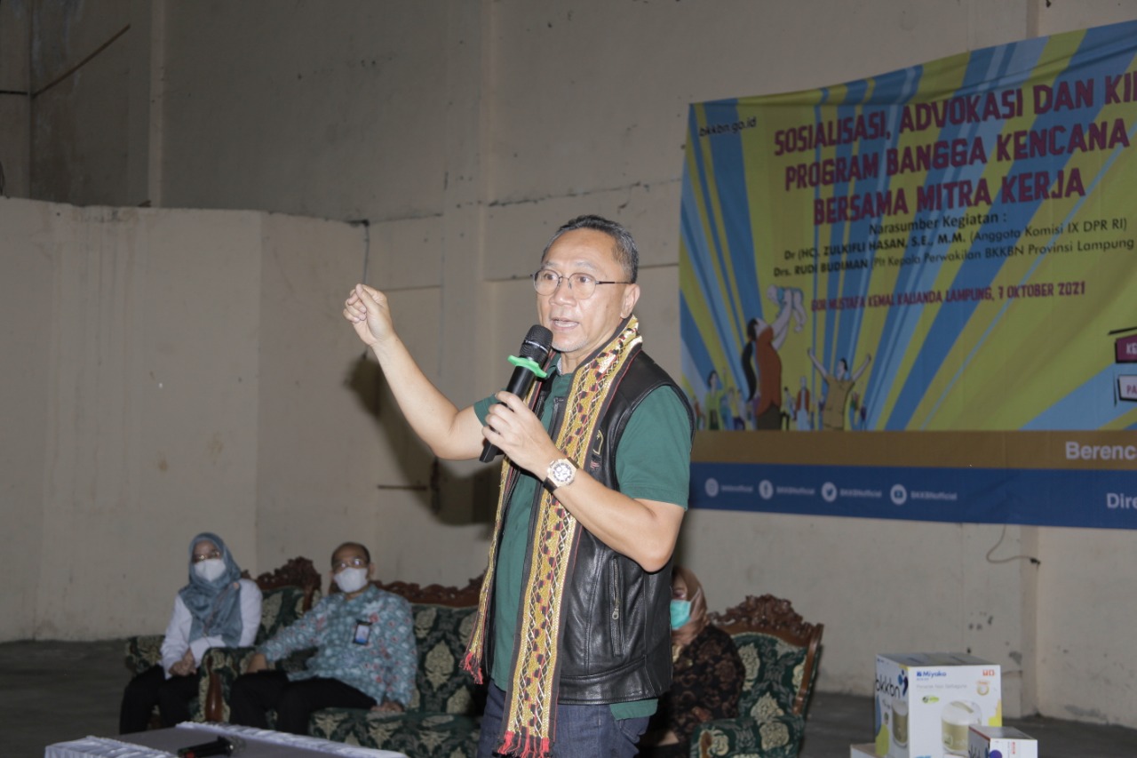 Kegiatan tersebut, turut hadir Anggota Komisi IX DPR RI Dr (HC). Zulkifli Hasan, S.E., MM. Sistha Atisomya, S.Psi., M.Si – Penata Kependudukan dan Keluarga Berencana BKKBN Drs. Rudi Budiman – Plt. Kepala Perwakilan BKKBN Provinsi Lampung Eka Riantinawati, SKM., M. Kes – Kepala Dinas Pengendalian Penduduk dan KB Kab. Lampung Selatan.