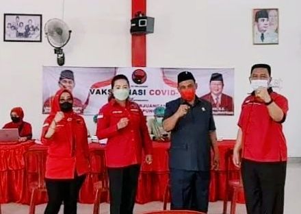 Bandar Lampung, Intailampung.com-Dalam rangka membantu pemerintah dalam menanggulangi pandemi covid-19 di Provinsi Lampung khususnya Lampung Tengah, DPC PDI Perjuangan Lampung Tengah bekerja sama dengan Dinas Kesehatan Kabupaten setempat menggelar vaksinasi massal.