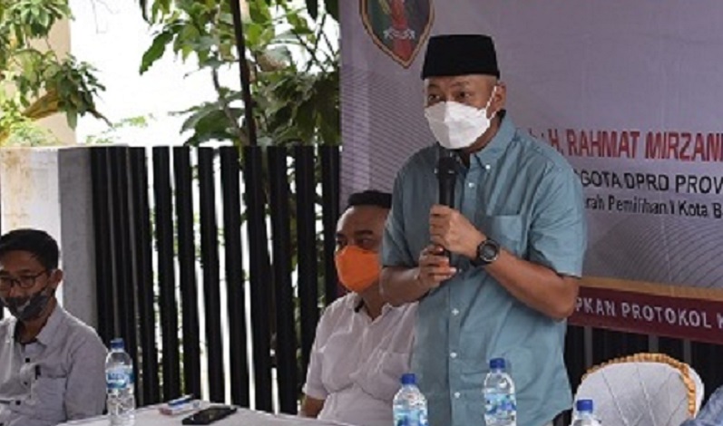 Bandar Lampung, Intailampung.com-Anggota DPRD Provinsi Lampung, Rahmat Mirzani Djausal menggelar Sosialisasi Peraturan Daerah (Sosperda) Nomor 3 Tahun 2019 Tentang Adaptasi Kebiasaan Baru bertempat di Jalan Gele Harun, Kelurahan Rawa Laut, Tanjungkarang Timur, Bandar Lampung, Sabtu (16/10/2021). Kegiatan ini dilaksanakan untuk mensosialisasikan mengenai pencegahan dan protokol kesehatan Corona Virus Disease 2019 (Covid-19) dalam kehidupan sehari-hari.