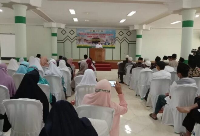 Intailampung.com, Tulang Bawang – Sebanyak 122 Jama’ah Calon Haji (JCH) Kabupaten Tulang Bawang (Tuba) Tahun 1443 H / 2022 M mengikuti Manasik Haji yang di gelar Kementerian Agama (Kemenag) kabupaten setempat di aula Islamic Center Menggala, Rabu (25/5/2022).