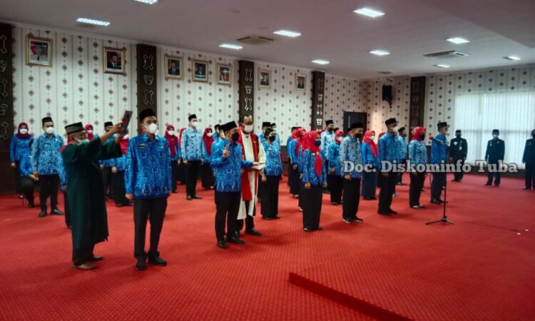 Mewakili Bupati Tulang Bawang Dr. Hj. Winarti., SE, M.H, Sekda Tuba melantik 46 pejabat fungsional di lingkup Pemerintah kabupaten Tulang Bawang. Kegiatan Pelantikan tersebut dilaksanakan di Ruang Rapat Utama, Sekretariat Daerah Kabupaten Tulang Bawang, Senin (30/5/2022).