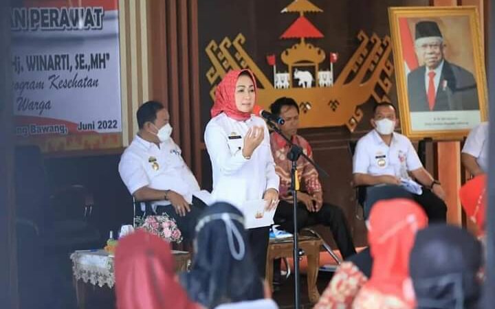 Intailampung.com, Tulang Bawang – Bupati Tulang Bawang Dr. Hj. Winarti.,SE, MH mengelar silahturahmi dengan Tenaga Perawat Kesehatan se- Kabupaten Tulang Bawang Dalam rangka realisasi program kesehatan Bergerak Melayani Warga, yang di laksanakan di pendopo rumah Dinas Bupati Tulang Bawang, pada hari Rabu (08/06/2022).