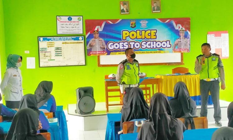 Larangan agar para pelajar SMP tersebut tidak mengendarai sendiri sepeda motor apalagi sampai dibawa ke sekolah, disampaikan oleh personel Sat Lantas Polres Tulang Bawang saat menggelar kegiatan Police Goes To Scholl di SMP Negeri 2 Banjar Agung, Kecamatan Banjar Agung, Kabupaten Tulang Bawang.