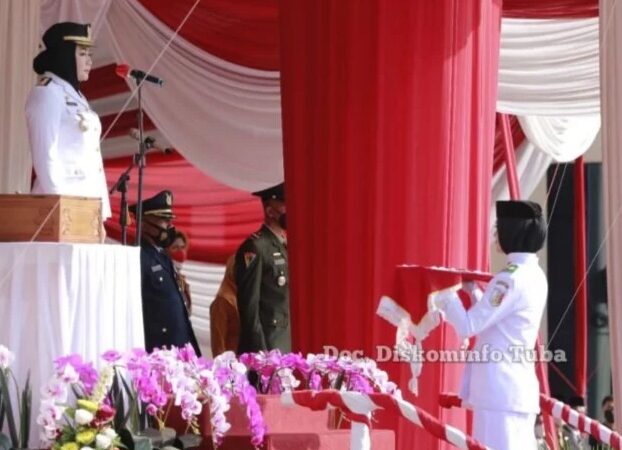 Intailampung.com, Tulang Bawang – Upacara peringatan HUT RI ke – 77 Tahun 2022 dilaksanakan dengan khidmad di halaman Kantor Pemkab Tulang Bawang, Hari Rabu (17/8/22). Bertindak sebagai inspektur upacara, Bupati Tulang Bawang Dr.Hj. Winarti.,SE,MH dan petugas Upacara dari jajaran Polres Tulang Bawang.