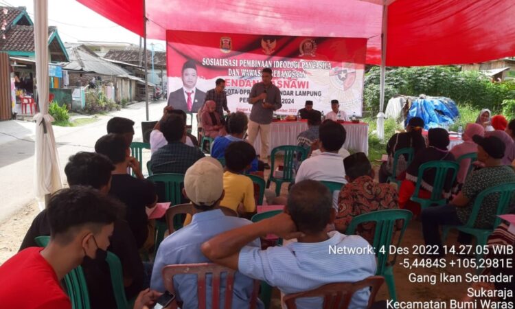 INTAILAMPUNG.COM – Anggota Komisi III DPRD Bandar Lampung, Endang Asnawi untuk kesekian kalinya menggelar sosialisasi Ideologi Pancasila dan Wawasan Kebangsaan kepada warga di Dapilnya.