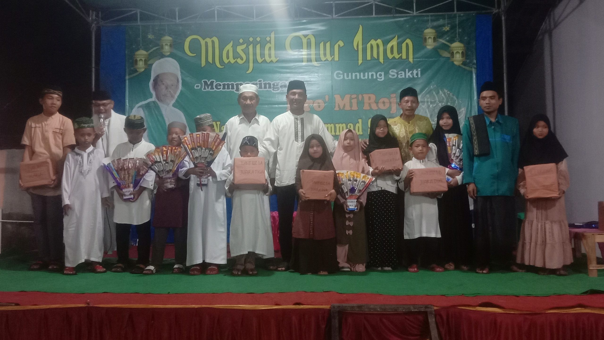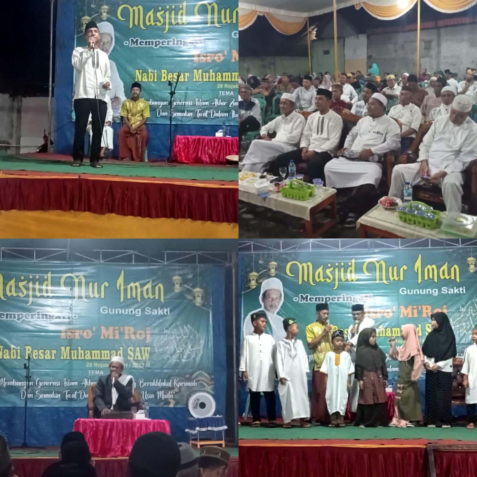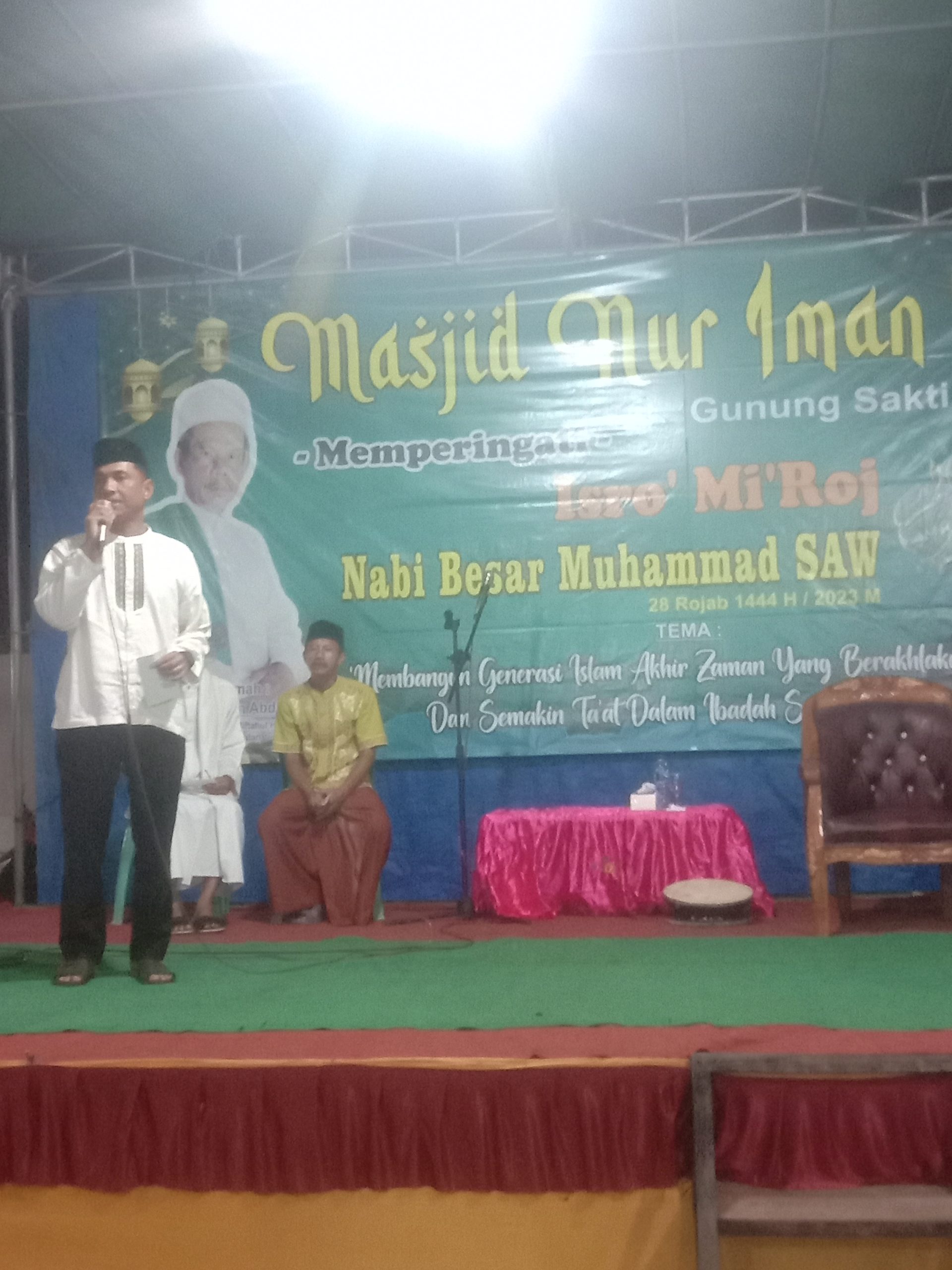 Intailampung.com, Tulang Bawang – Masjid Nur Iman Gunung Sakti bersama Masyarakat Memperingati Hari Isro’ Mi’Roj Nabi Besar Muhamad SAW 28 Rojab 1444 H / 2023 M. Mengundang K.H. Eman Sualaiman Abdul Fattah, Pimpinan Pondok Pesantren Miftahul Husada 537 Palas Lampung Selatan. Sekaligus pembagian hadiah kepada pemenang lomba Azan, Lomba Mengaji, Dan Lomba Baca Surat Pendek Al-Qur’an. Tulang Bawang.