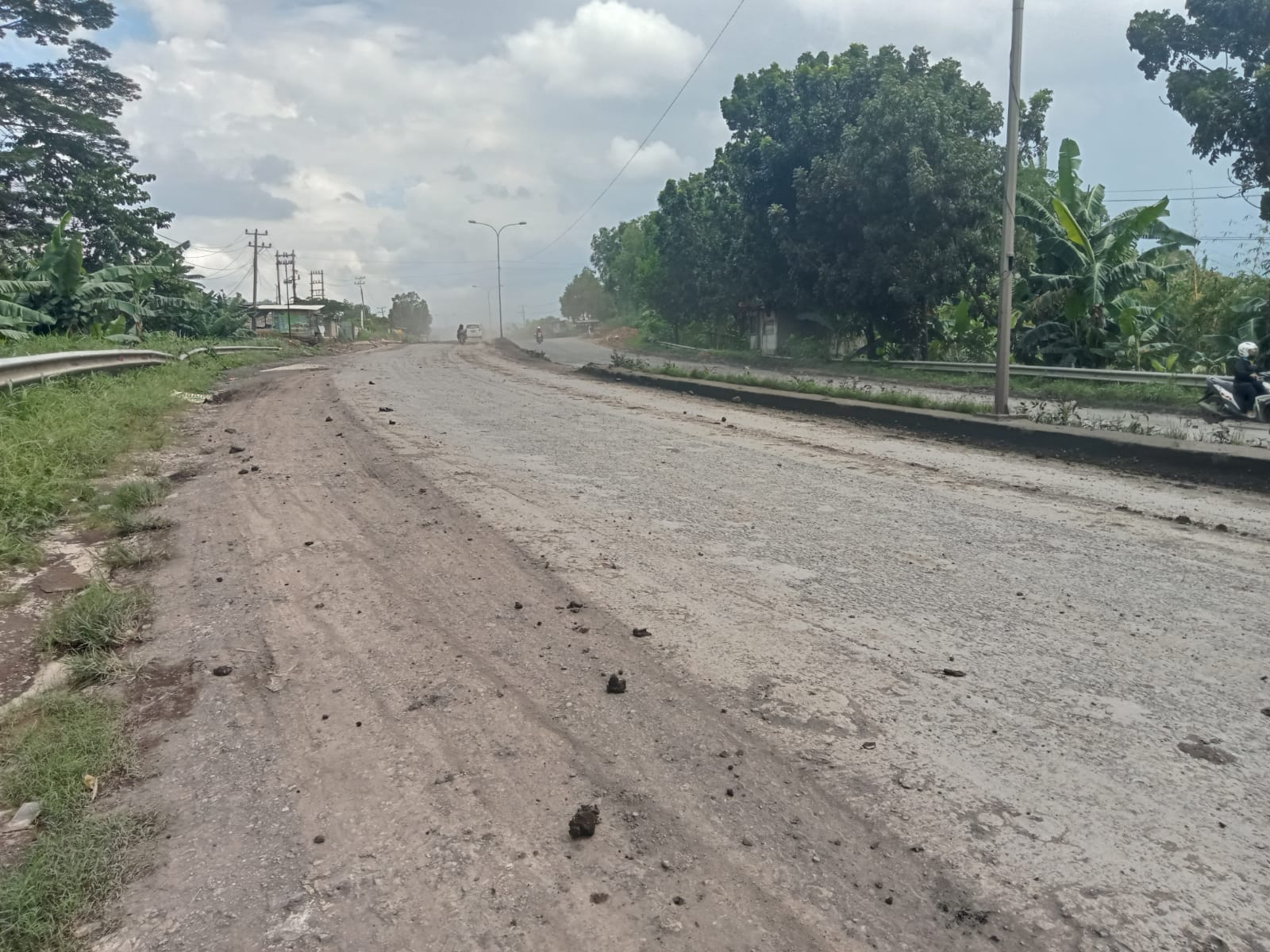 Saat hujan jalan menjadi licin dan berdebu disaat terik. Kondisi jalan sering dikeluhkan pengguna jalan yang melintas.