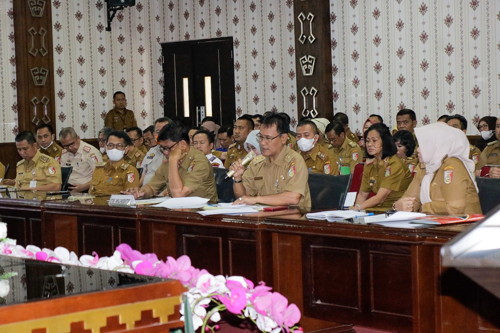 Sekretaris Daerah Kabupaten Tulang Bawang Ir. Anthoni, MM., selaku Pimpinan Rapat, didampingi Inspektur Kabupaten Tulang Bawang, Dr Untung Widodo, M.Si., menyampaikan, bahwa Kabupaten Tulang Bawang sangat serius memperhatikan pasokan bahan baku yang dibutuhkan masyarakat Kabupaten Tulang Bawang pada Bulan Ramadan ini.