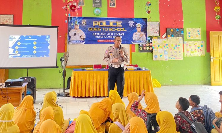 Intailampung.com, Tulang Bawang- Satuan Lalu Lintas (Sat Lantas) Polres Tulang Bawang, Polda Lampung, menggelar kegiatan Police Goes To School di Sekolah Dasar (SD) yang ada di wilayah hukumnya.