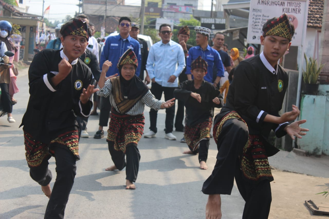 Terpisah, kunjungan dapil di desa Muara Putih, Natar, Bung Adi dan Andika Kangen Band disambut dengan arak-arakan dan tarian Pencak Silat berbalut adat Lampung.