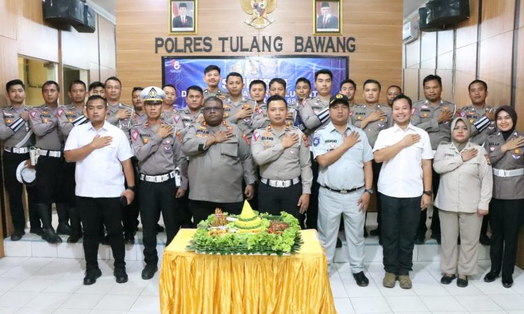 IntaiLampung.com, Tulang Bawang– Satuan Lalu Lintas (Sat Lantas) Polres Tulang Bawang, Polda Lampung, menggelar acara syukuran dengan cara yang sederhana untuk memperingati Hari Lalu Lintas Bhayangkara ke-68 tahun 2023.