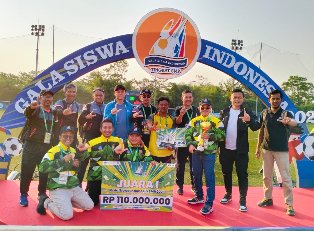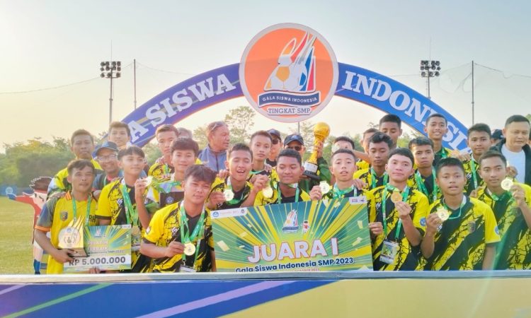 INTAILAMPUNG.COM – Tim Sepak Bola GSI (Gala Siswa Indonesia) Lampung Tengah mewakili Provinsi Lampung menjadi juara 1 dalam turnamen GSI jenjang SMP tingkat Nasional Tahun 2023.