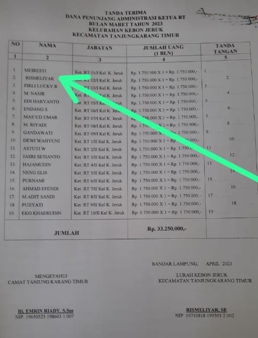 INTAILAMPUNG.COM – Laporan Hasil Pemeriksaan (LHP) Lurah Kebon Jeruk Kecamatan Tanjung Karang Timur (TKT) Rismeliyar diduga tidak melibatkan saksi riil yang sudah di serahkan oleh Walikota Bandarlampung.