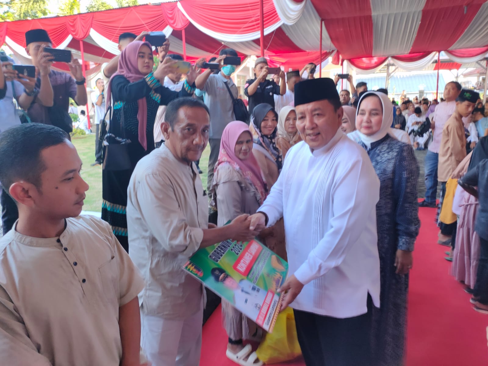 Turut Hadir juga bapak Ir. Hi. Arinal Djunaidi, Gubernur Lampung, Dr. KH. A. Bukhari Muslim Lc.,M.A., Dosen UIN Syarif Hidayatullah Jakarta, PJ. Bupati Pringsewu, Anggota FORKOPIMDA Prov. Lampung, Ibu Hj. Riana Sari Arinal, Ketua Tim Penggerak PKK Provinsi Lampung, Para Pejabat Pimpinan tinggi Pratama Provinsi Lampung.