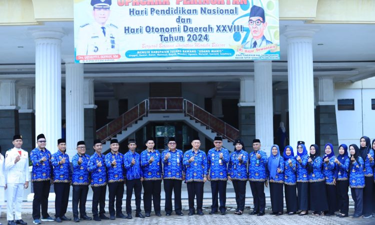 Selepas membacakan sambutan Mendikbudristek RI, Penjabat Bupati Tulang Bawang bapak Drs Qudrotul ikhwan MM mengucapkan Selamat Hari Pendidikan Nasional dan Hari OTDA Tahun 2024