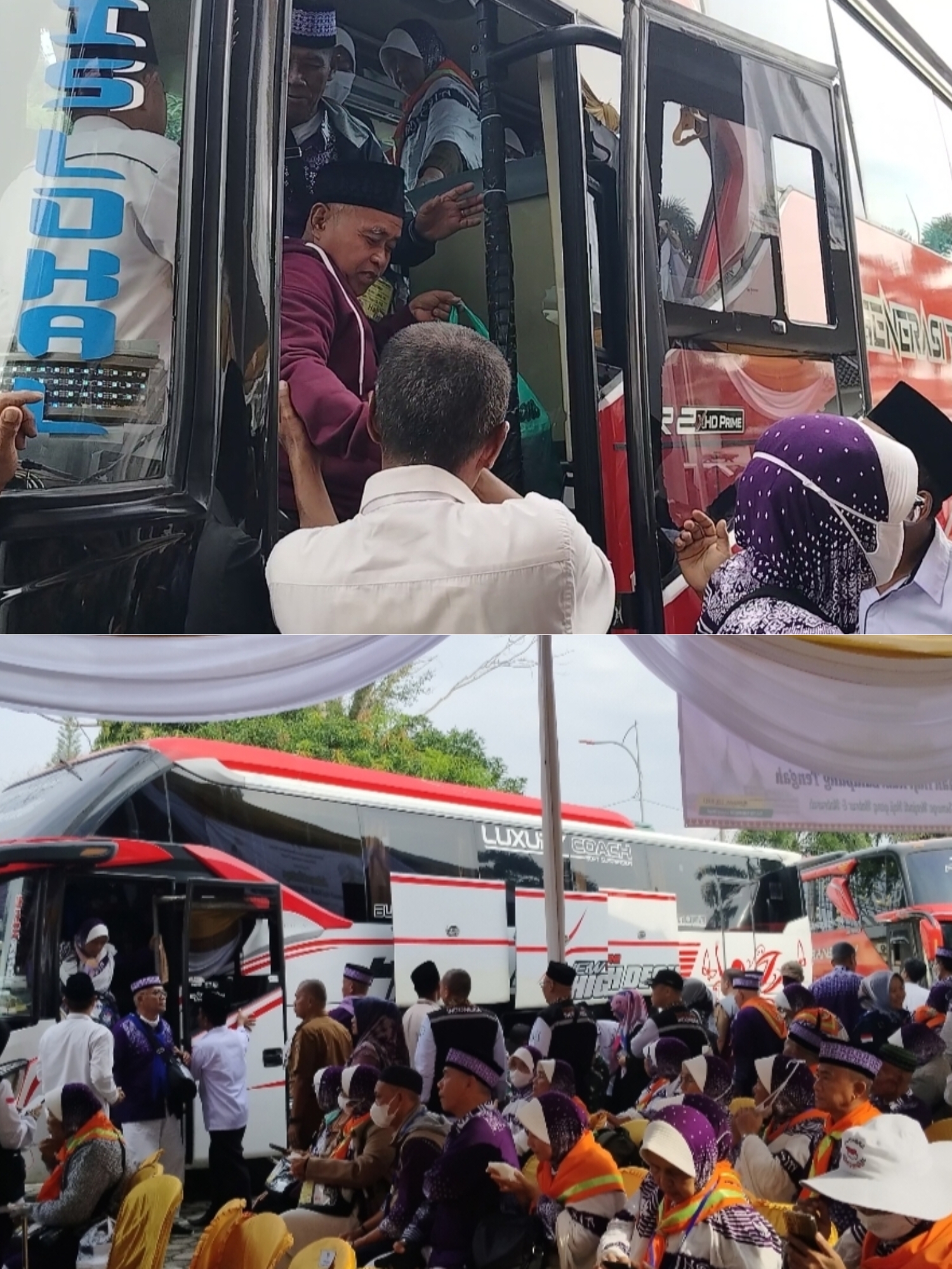 Ket,Foto: Jemaah haji pertama kloter 06 Lamteng tiba dengan 10 Bus di kediaman Rumah Dinas Wakil Bupati Lamteng. (Foto, Redaksi).