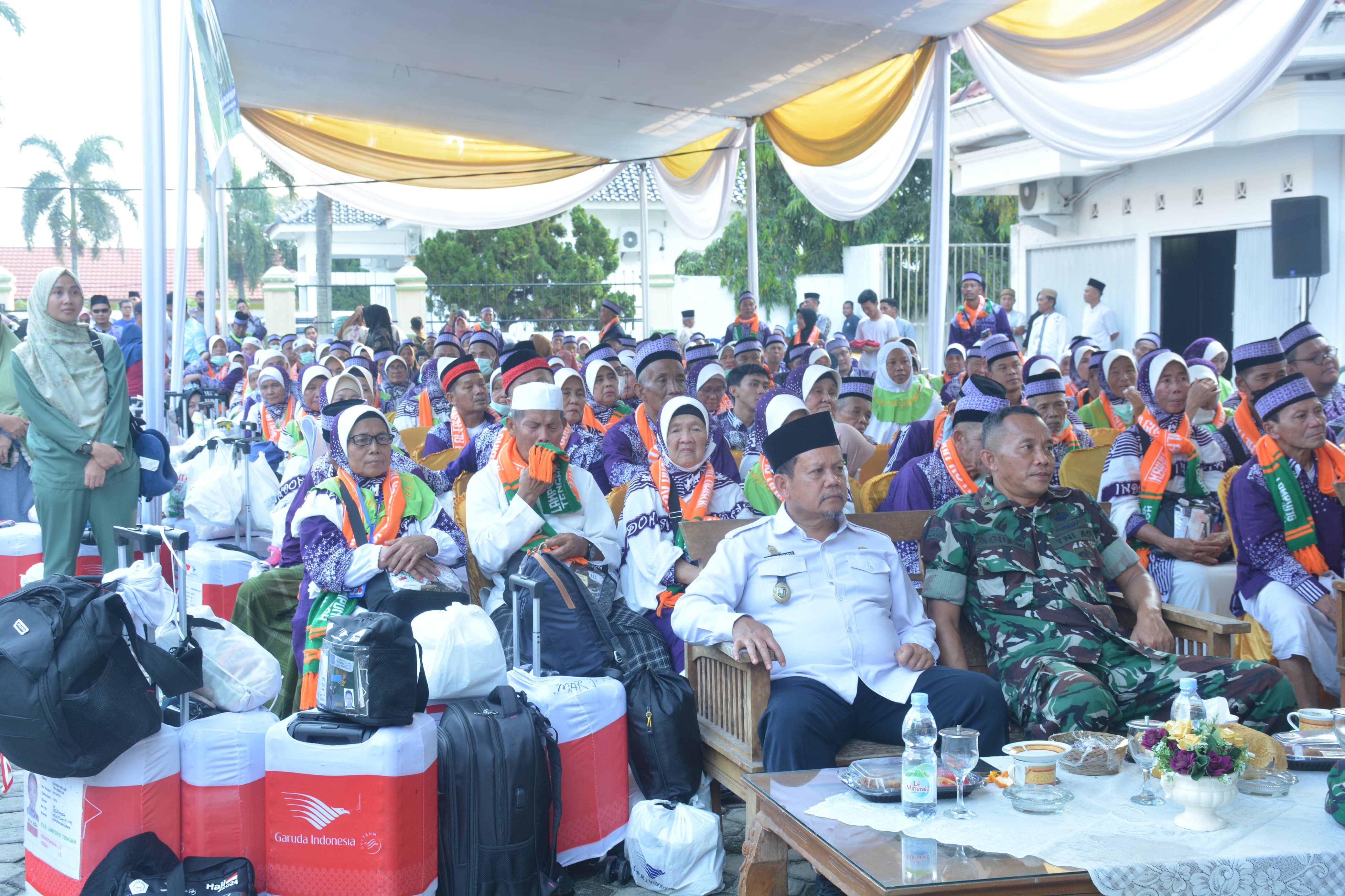 Ket,Foto: Wabup Lamteng dr. Ardito Wijaya sambut Kepulangan jemaah haji Kloter 23 di halaman Rumah Dinas Wakil Bupati Lamteng, Rabu (03/07/2024).