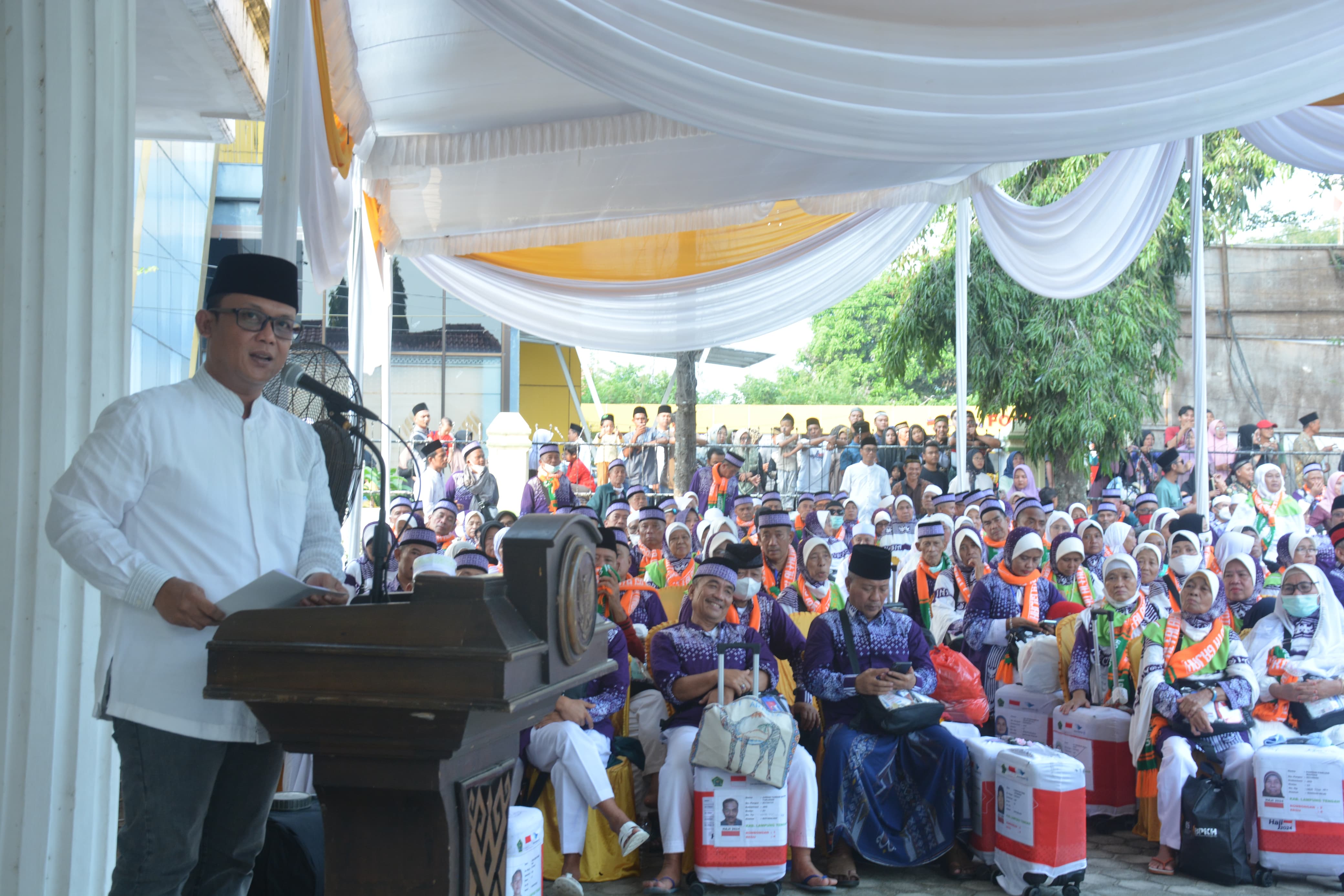 Dengan mengucapkan alhamdulillahhirobbilalamin, secara resmi Jamaah Haji Kabupaten Lampung Tengah Tahun 2024, saya terima kembali di Kabupaten Lampung Tengah dan selanjutnya saya serahkan kembali kepada keluarga masing-masing, semoga Allah SWT senantiasa melindungi kita semua.