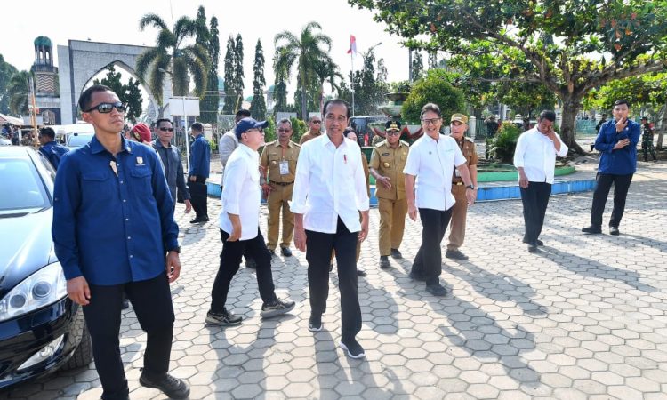 Usai melaksanakan shalat,Jokowi dan rombongan bertolak menuju pasar tradisional Kota Agung.