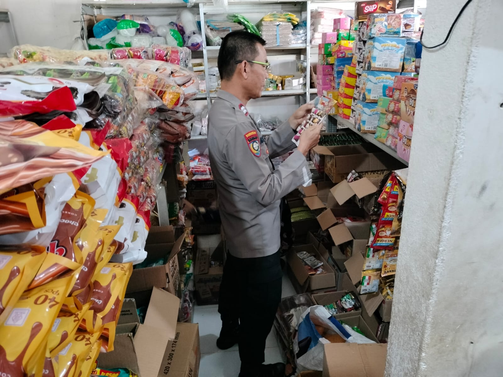 “Sidak yang petugas kami lakukan ini adalah mengecek langsung kemasan dan tanggal kadaluarsa baik itu makanan maupun minuman. Apabila ditemukan ada yang rusak atau kadaluarsa, makanan tersebut harus diganti dan tidak boleh dijual lagi,” papar perwira dengan balok kuning tiga dipundaknya.