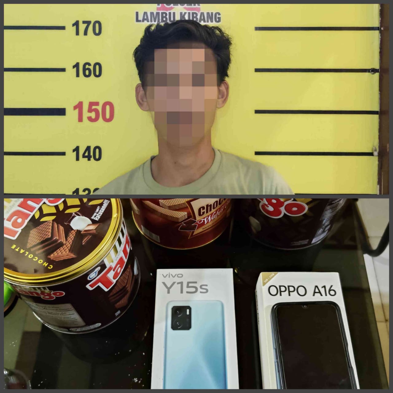 “Pelaku yang diamankan Tim Tekab 308 Presisi dalam kasus Curat yakni seorang laki-laki berinisial HA (26) Profesi wiraswasta, warga Pagar Dewa Kec. Pagar Dewa Kab. Tulang Bawang Barat, Berikut Barang Bukti diamankan yaitu : 1 (satu) ) Buah Kotak Handhphone OPPO A16, 1 (satu) buah kotak handphone merk VIVO Y15s, 3 (tiga) Buah tabungan/Celengan Kaleng, 1 (satu) buah Hp merk Oppo A16 warna perak angkasa, ujar Kapolsek