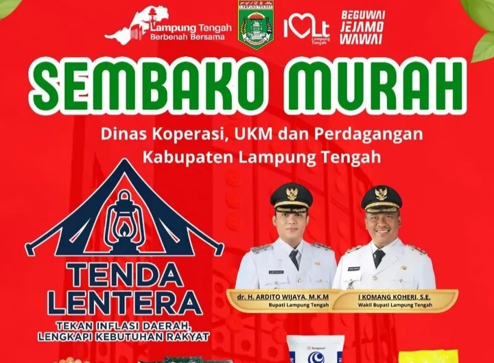 INTAILAMPUNG.COM – Pemerintah Kabupaten Lampung Tengah, melalui Dinas Koperasi UMKM dan Perdagangan, akan menggelar pasar murah, (Stand Tenda Lentera) sekaligus giat Car Free Day, di Taman Tugu Canang, Gunung Sugih, besok Minggu 3 Agustus 2025.