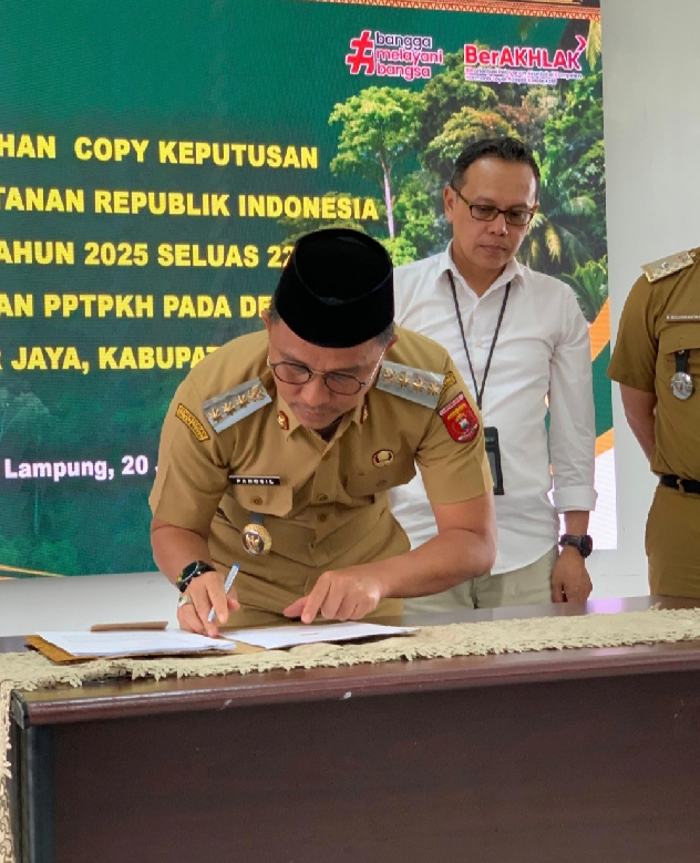 Dirinya menerima Surat Keputusan Menteri Kehutanan Republik Indonesia Nomor 241 Tahun 2025 tentang Penetapan Batas Areal Pelepasan Sebagian Kawasan Hutan Produksi Tetap, Dalam Rangka Penyelesaian Penguasaan Tanah Pada Kawasan Hutan (PPTPKH) Provinsi Lampung Tahap I Untuk Sumber Objek Reforma Agraria (TORA).
