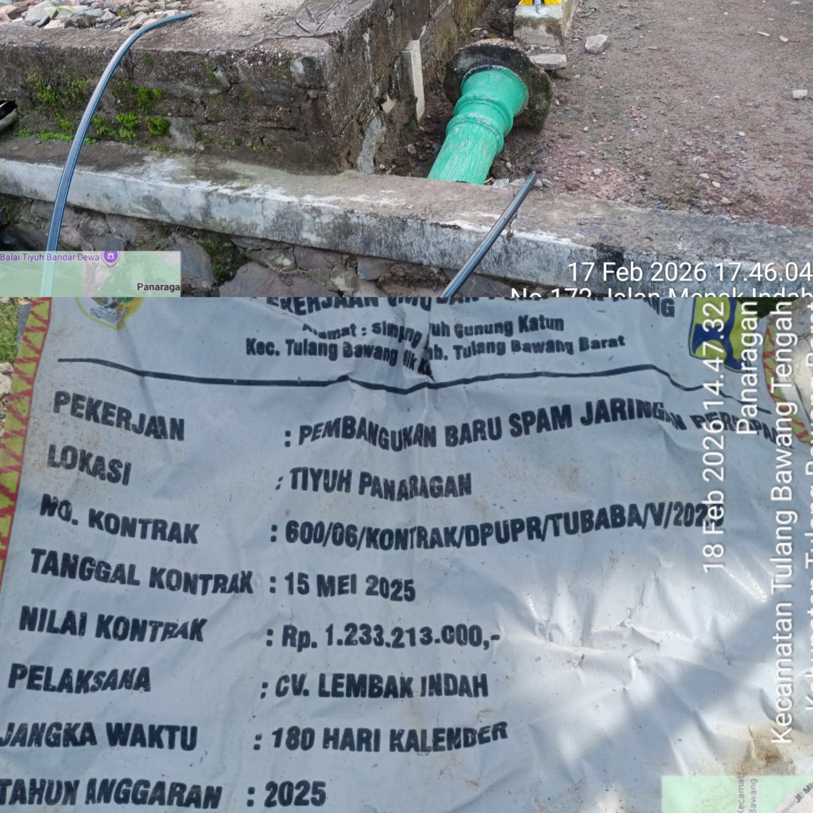 INTAILAMPUNG.COM, Tulang Bawang Barat – Proyek Penyediaan Air Minum (PAM) senilai Rp1.233.213.000 di Tiyuh Panaragan, Kabupaten Tulang Bawang Barat (Tubaba), kini menuai sorotan keras. Meski secara administrasi dinyatakan selesai, hingga Kamis (19/2/2026) air bersih yang dijanjikan belum juga mengalir ke rumah warga.
